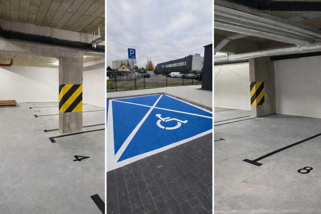 Malowanie parkingu na terenie obiektu nowego apartamentowca.