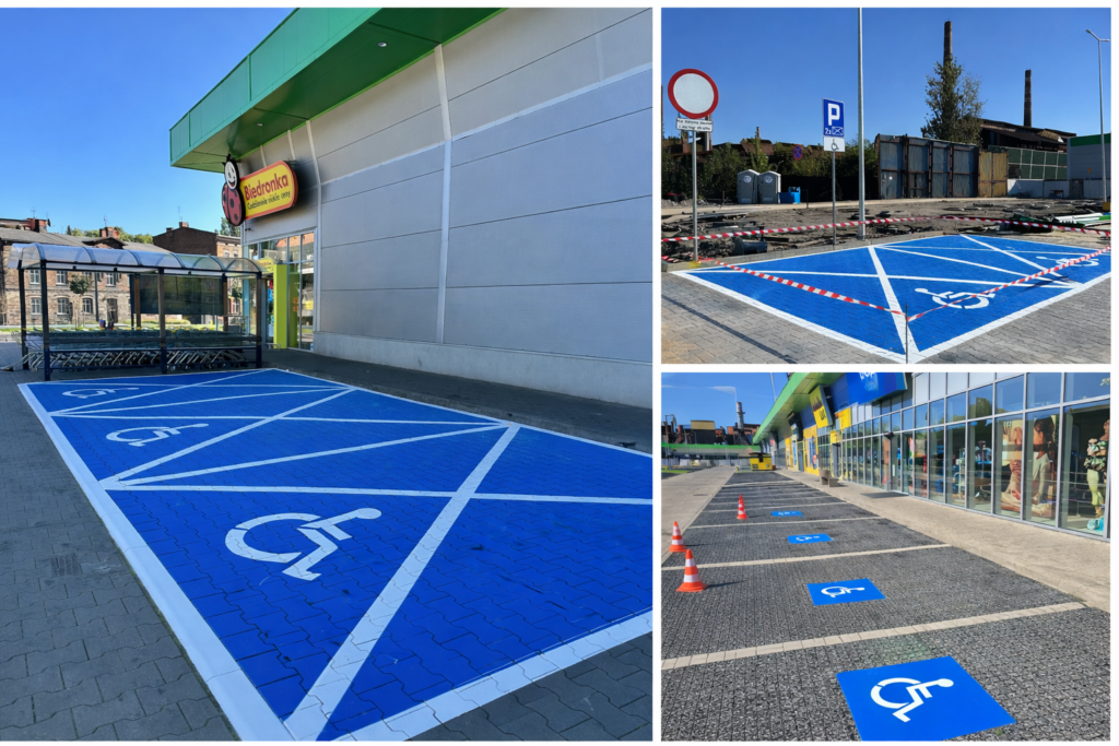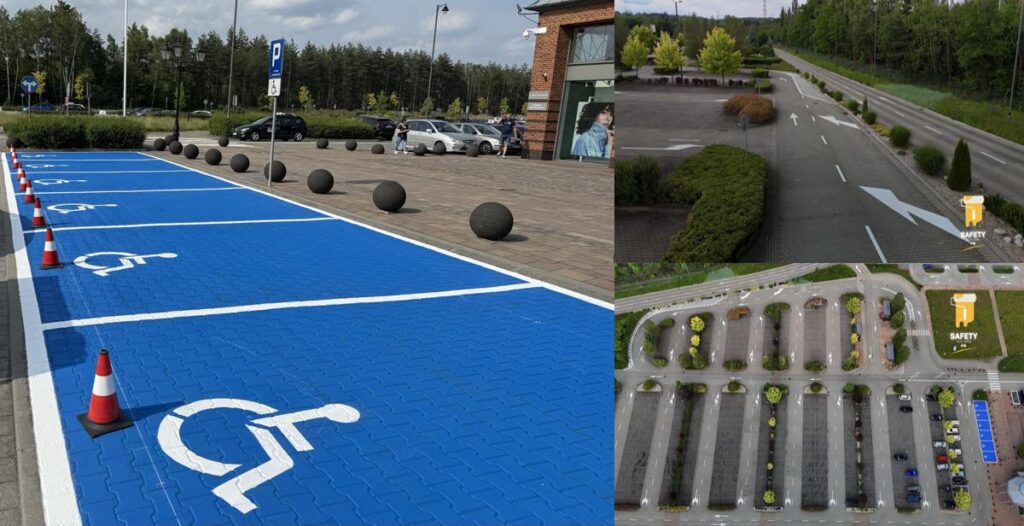Wykonanie oznakowania poziomego na terenie obiektu handlowego.